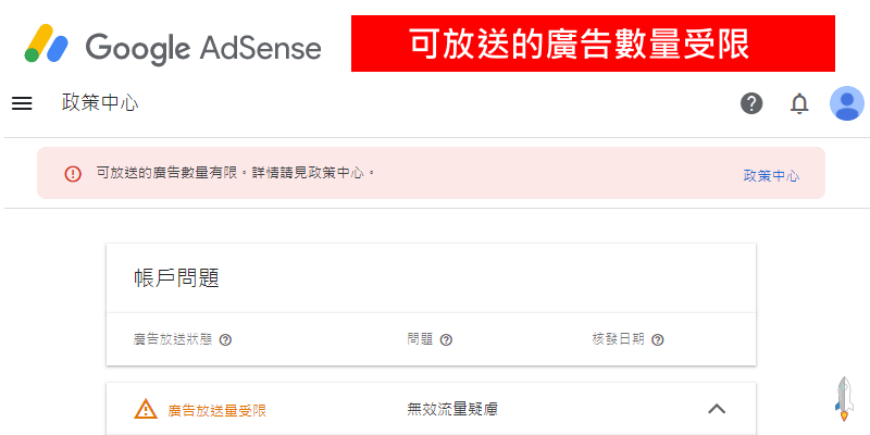 收到AdSense「廣告放送量受限」該怎麼辦?