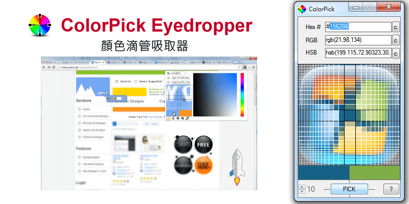 ColorPick Eyedropper線上網頁取色器,用滴管吸色,查詢顏色代碼資訊。