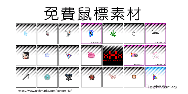 在設計網站時,若想用點比較特別的滑鼠游標樣式,可以到Cursors 4U網站搜尋可愛風格、動漫、電影、遊戲或各種的靜動態鼠標款式,並將CSS程式碼貼到網站裡,取代原本比較單調的鼠標。如果想要變更電腦的滑鼠游標,可下載ai圖檔在參考Win10鼠標套用教學。