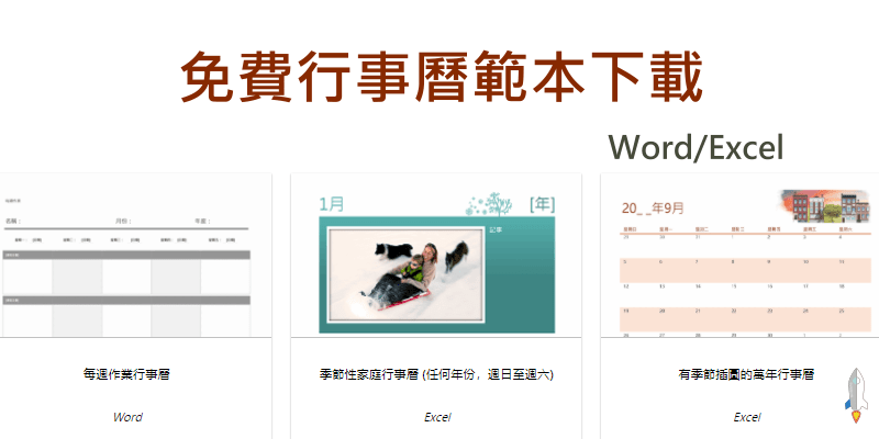 每週工作分派行事曆、學生作業規劃、隨選年份萬年曆、有插圖的可愛行事曆等等…,下載下來,再使用Word和Excel編輯。