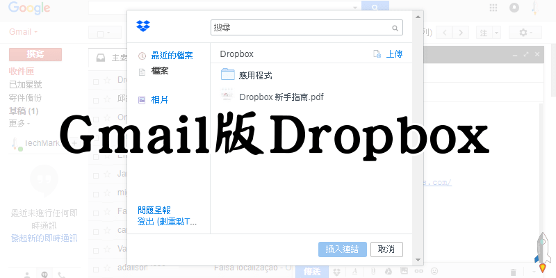 《Gmail版Dropbox》免跳出視窗!直接在撰寫郵件時,夾帶Dropbox檔案與分享連結(Chrome外掛)