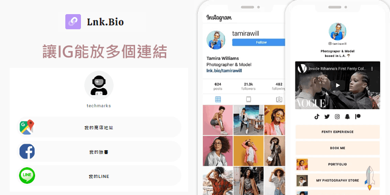 Link in bio 免費的IG連結整合器,讓IG可以放多個連結!讓Instagram或是TikTok的個人檔案位置,放上多個連結。能把你的商家地址(Google Maps)、LINE加入好友網址、Facebook網站、連絡電話、YouTube頻道等…,整理在一個網頁畫面中,讓其他人只要點擊一個連結,就能快速進入查看所有你的社群。