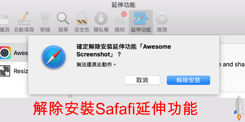 安裝了Safari瀏覽器延伸功能後,想要將沒用到的外掛移除掉卻不知道該怎麼刪?只要前往Safari工具列的偏好設定,進入Safari Extension Gallery就能管理所有延伸功能,包含查詢所需要的權限、解除安裝、關閉自動更新或查看更多外掛的說明。