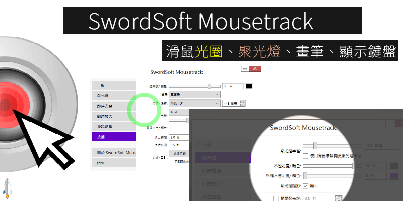 SwordSoft Mousetrack 滑鼠光圈+聚光燈+鍵盤顯示教學