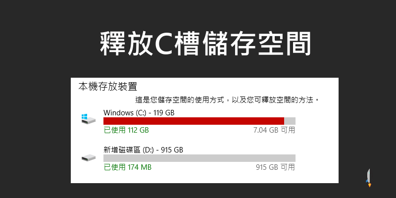 電腦的C槽滿了?磁碟機的空間不足了嗎,簡單教你怎麼釋放儲存空間。