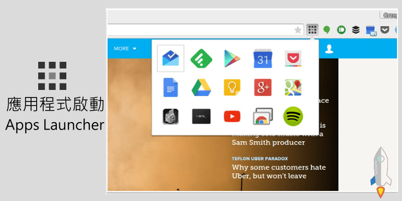 在下載Google Chrome的應用程式之後,要開啟軟體需要從電腦搜尋或者輸入chrome://apps才能啟動,現在提供大家更方便的方式,只要安裝Chrome應用啟動器Apps Launcher這個擴充功能,之後下拉瀏覽器圖示就能找到已安裝的軟體了!