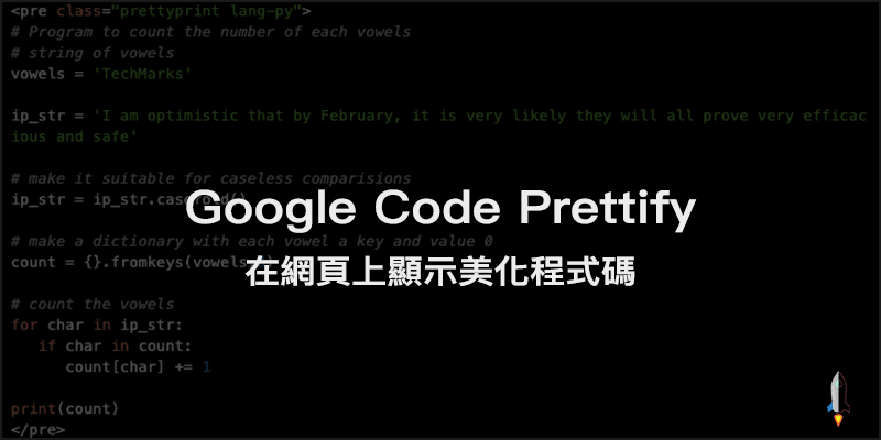 做筆記或教學分享的時候,需要將程式碼美化並置放在網頁文章上顯示,那就使用Google code-prettify美化上色程式碼後,呈現在Wordpress、Html、Blogger、Medium或其他網站平台的區塊內,另外還能選擇指定代碼的語言如Html、Java、Python、XML、SH等等各種程式語言樣式可以套用。