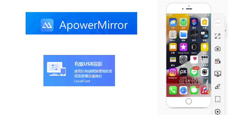 手機USB「有線投影」螢幕畫面分享到電腦-iPhone、安卓教學