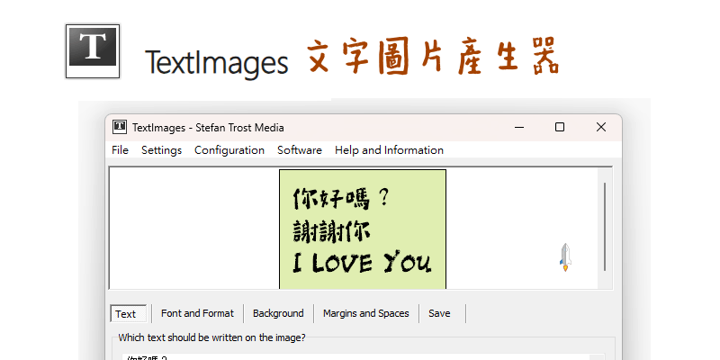 文字怎麼製作成圖片?超簡單,直接用「TextImages文字圖片產生器」,開啟後在方框輸入文字。
