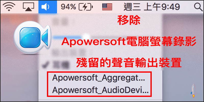 Home » 網路與軟體分享 » Mac » 『教學』移除 MAC解除安裝Apowersoft電腦螢幕錄影,殘留的聲音輸出裝置