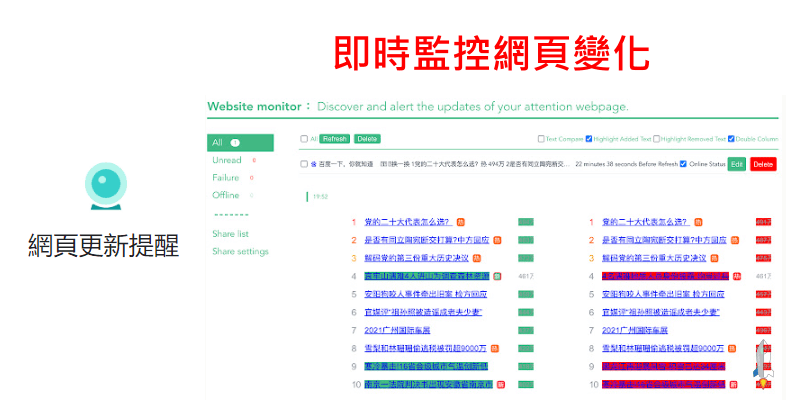 「Webmonitor 網頁更新提醒 」是一款免費Chrome擴充外掛,當網站有任何的變動,就會立刻發出訊息通知,除了能整個頁面監控之外,也可以自訂範圍、監控時間、監控規則。適合當熱銷產品有庫存、搶演唱會門票、最新公告一公布時就掌握到最快的訊息。