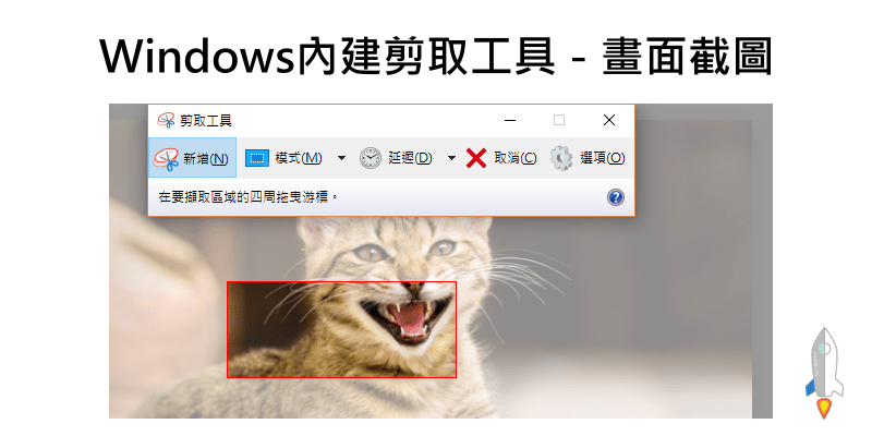選擇擷取畫面的模式:任意剪取、長方形剪取、視窗剪取、全螢幕剪取。