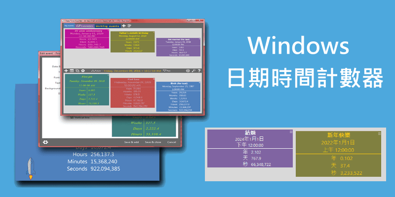 Date Time Counter日期時間計數器,免費的Windows電腦倒數計時日小工具。輸入重要的日子,計算距離該日子還有多少天?距離大考還有幾天?發薪水還有幾天?或者也能拿來計算已經過去的日子,結婚已經幾天了?出生已經幾天了?