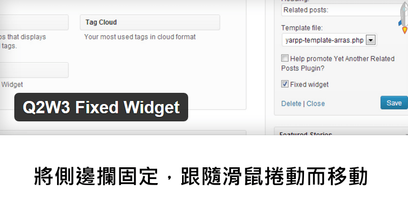 現在很多部落客會讓網站的小工具(側邊欄)變成浮動欄位,也就是說在瀏覽網站畫面向下捲動時,將要顯示的資訊跟隨滑鼠滾動而固定在螢幕視窗上,讓眼睛的視線可以一直看到它。除了擺放Facebook的粉絲團、推薦閱讀文章與與廣告都能有效的提升點擊率。除了寫Javascript程式來實現這個效果之外,WordPress也有Q2W3 Fixed Widget外掛能直接套用。